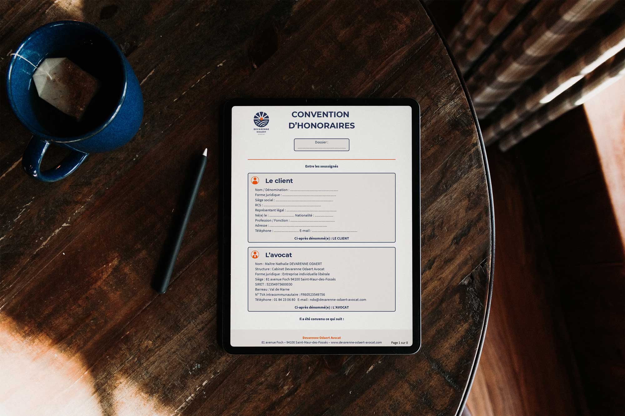 Les honoraires sont définis à l’avance, en toute transparence, à travers une convention d’honoraires. À titre indicatif, le cabinet est susceptible d’appliquer les honoraires suivants.