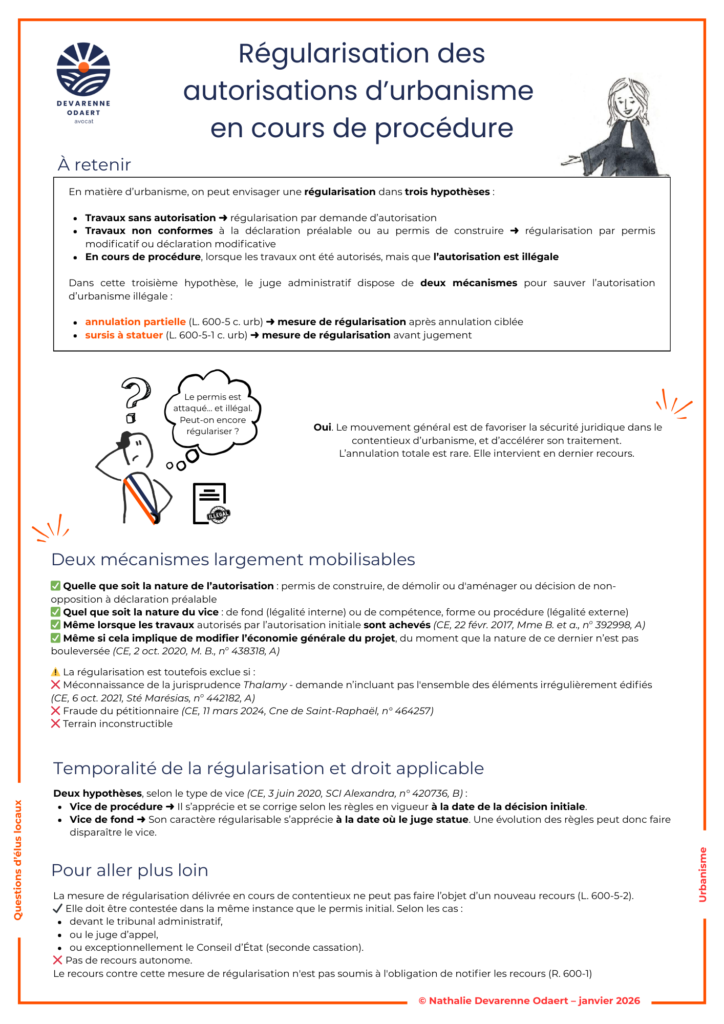 Dans cette troisième hypothèse, le juge administratif dispose de deux mécanismes pour sauver l’autorisation d’urbanisme illégale :
